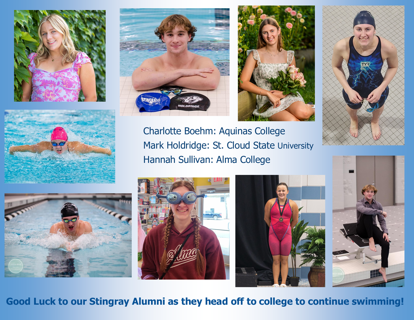 Best of luck to our Stingray alumni as they take the plunge into their next big adventureโcollege! We are so proud of all you have accomplished and cannot wait to see what is ahead for you, both in the classroom and in the pool.