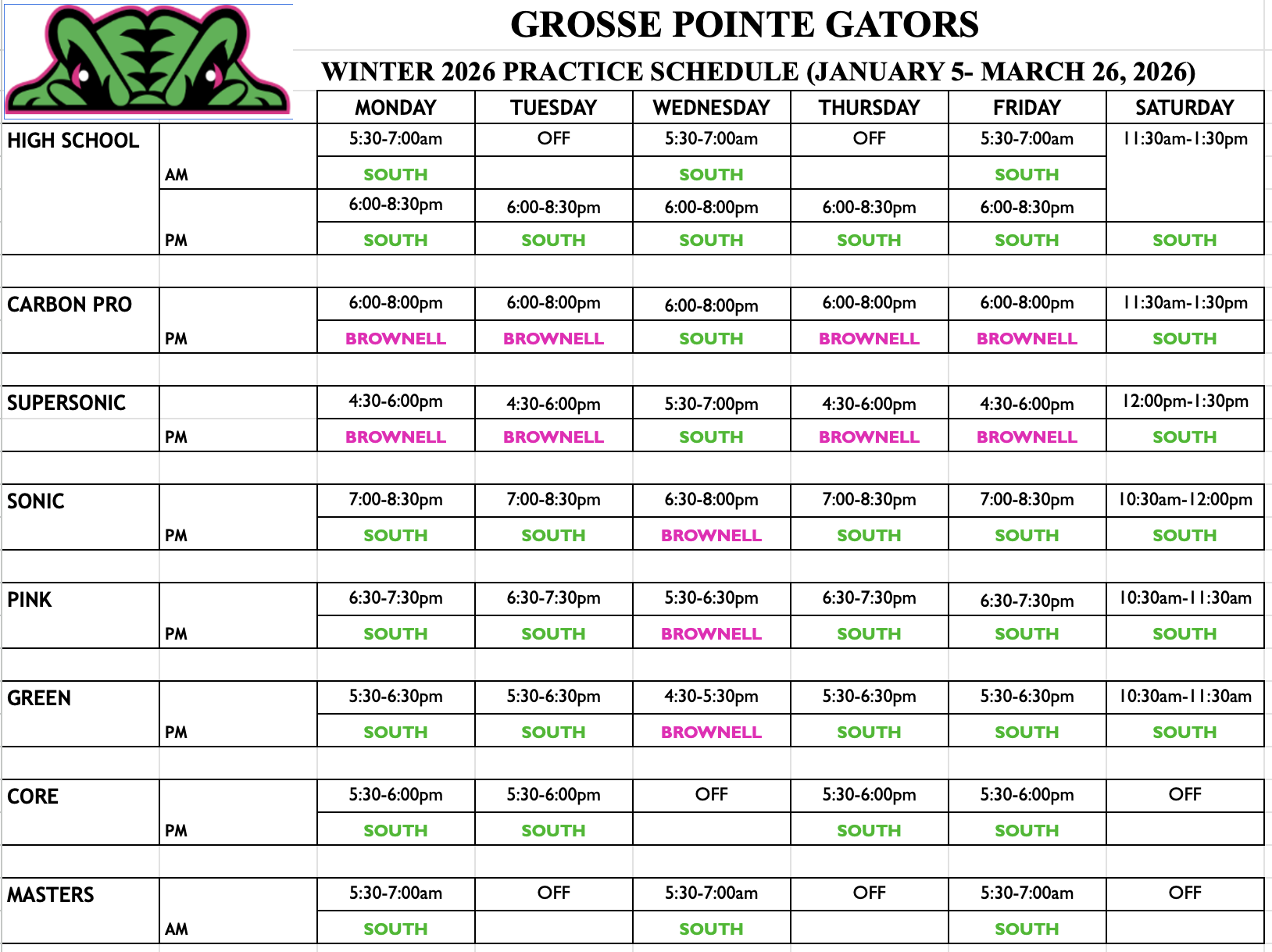 PRACTICE SCHEDULE