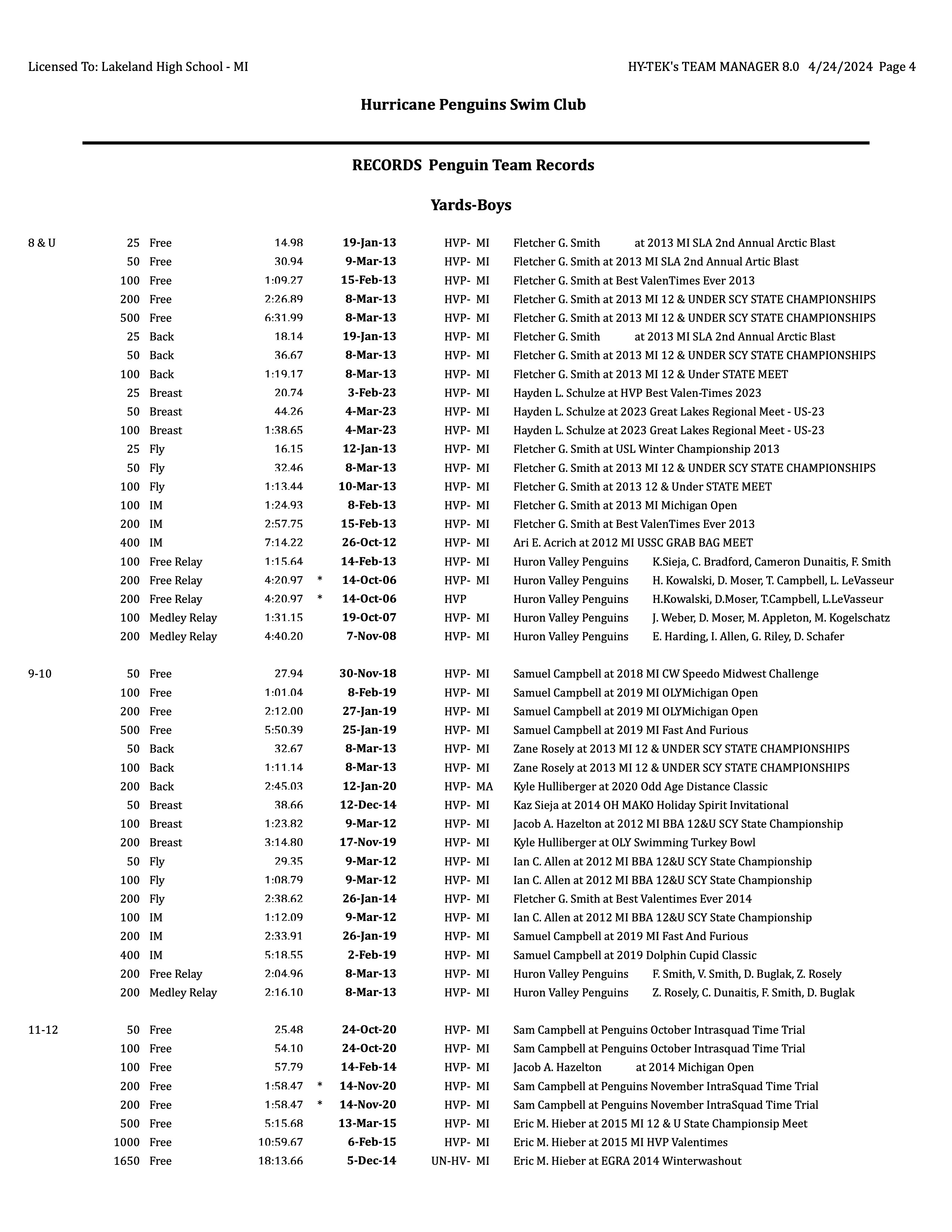 To print the most recent document containing official Hurricane Penguin team records for the 2023-2024 Short Course season click here.
