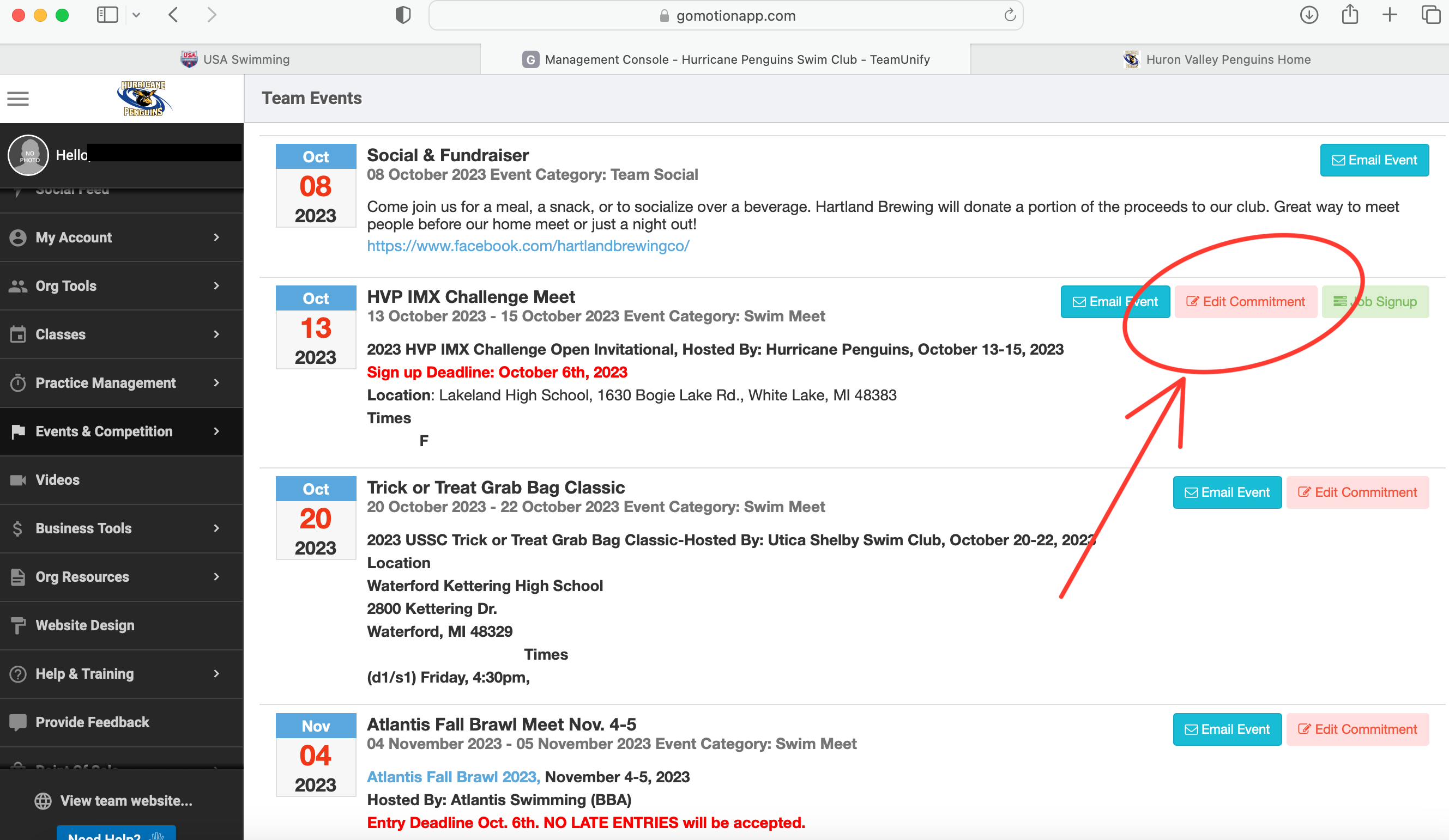 3. Navigate to the event you would like to declare or register for, and select "edit commitment."
