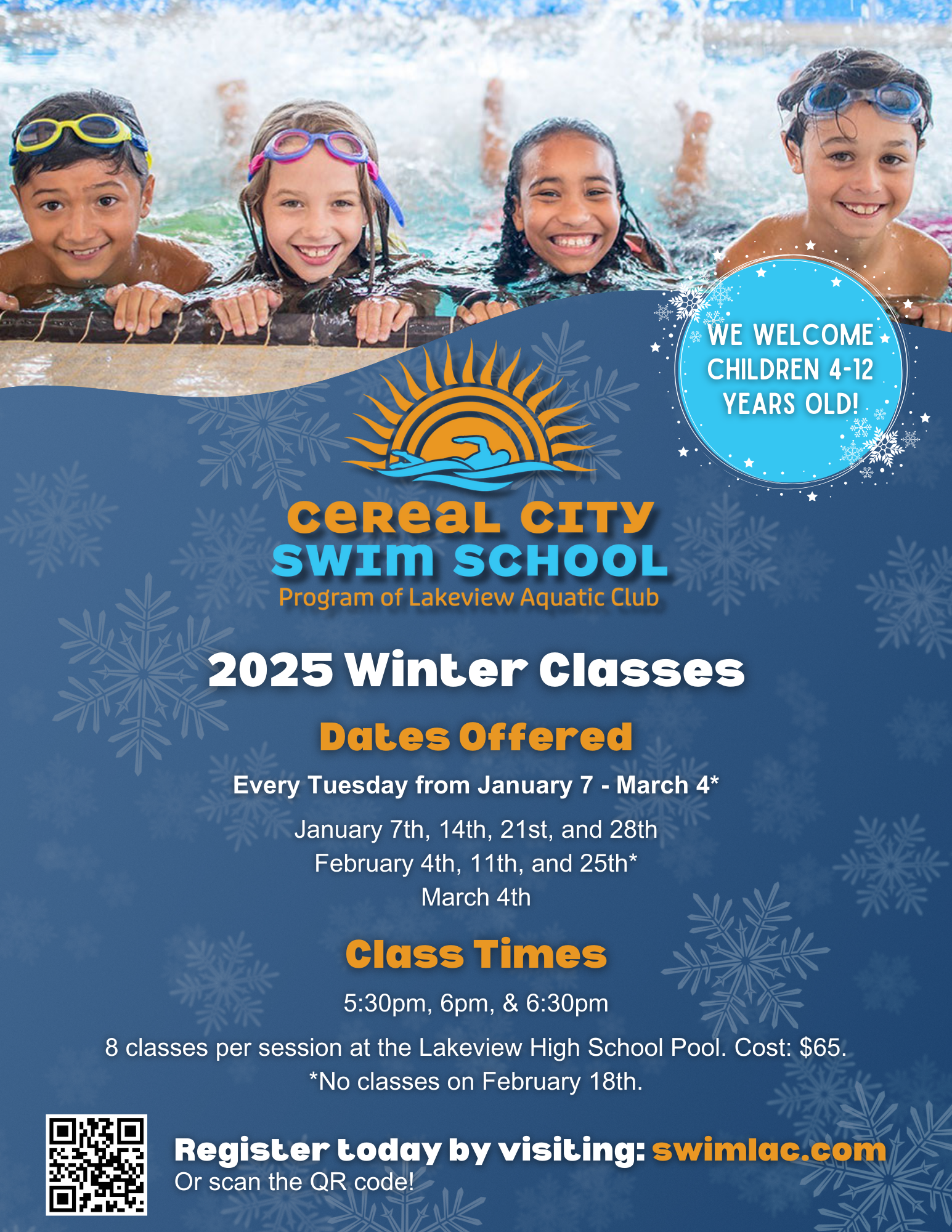 Due to popular demand, we have added winter classes for our Cereal City Swim School!!