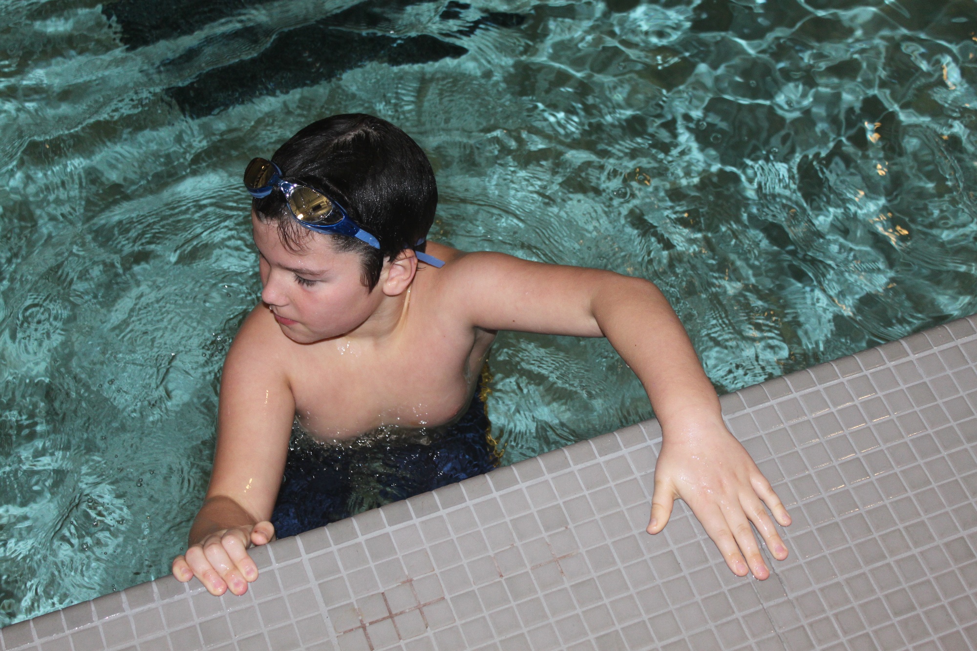 The Jr. Otters and Pups Deep groups have their lessons in the shallow end, the length is approximately 12.5 yards, or half of the pool. Swimmers learn all the four strokes and begin their skill set for competition. A variety of swim time choices are offered.