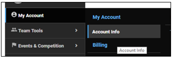 Once logged in, hover over My Account and then click on Account Info: