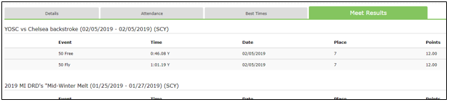 Choose the name of the member whose meet results you are interested in reviewing: