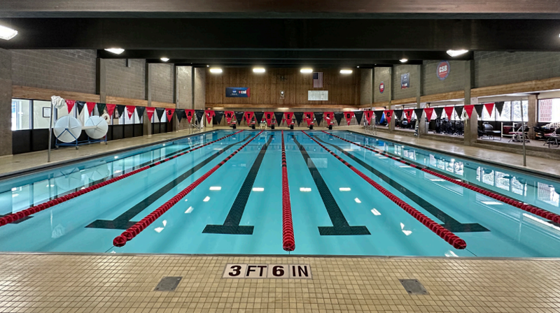Park in Guest Lot P10 or P8 and go into door marked "Murray Hall & Pool"