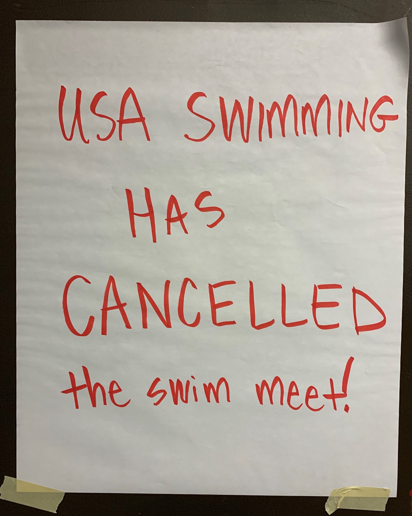 Just announced here in Rochester, the Age Group State meet will not be held this weekend as scheduled due to health concerns related to the Corona virus. I am personally saddened by this turn of events, as I know how hard you all worked during the season, and how excited those of you who qualified for the meet were to compete this weekend.