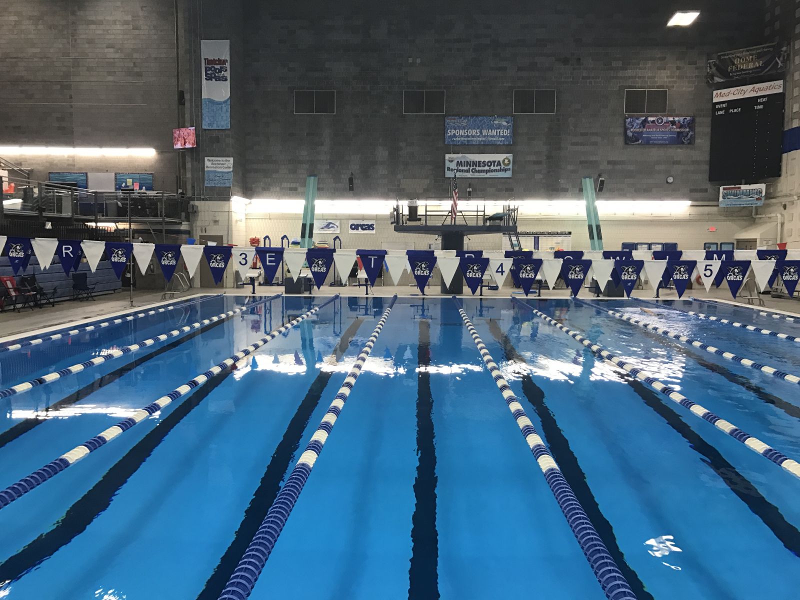 Practices are at the Rochester Recreation Center. The facility has two 1 Meter and two 3 Meter diving boards.