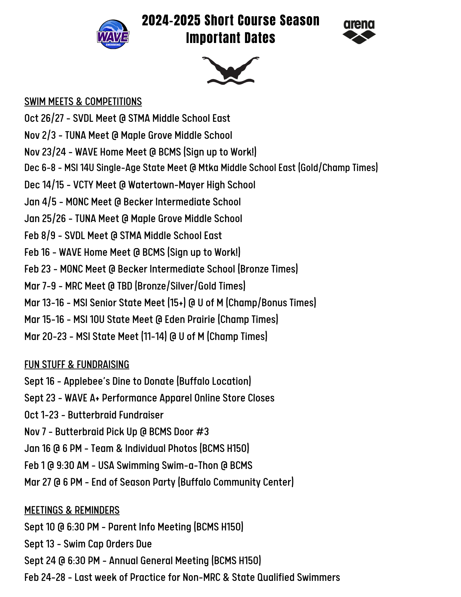 If you missed receiving a hand out last week with important dates and info, here it is! (We also have copies available at the pool!)