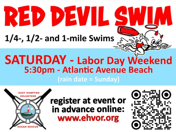 The annual Red Devil swim is this Saturday at 5:30. There is a quarter mile swim for our younger swimmers, 1/2 swim and mile swim. This event is a fundraiser for East Hampton Ocean rescue. Hope to see many of you there!