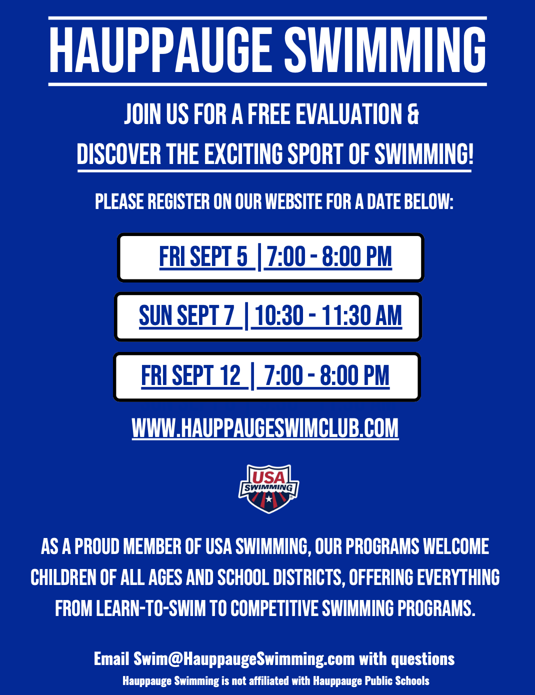Thank you for your interest in our program. We require all new swimmers come to a tryout so our coaching staff can evaluate and place your swimmer into the appropriate program. We offer a variety of year round swimming options; swim school, swim league and our USA Swimming competitive swim team.