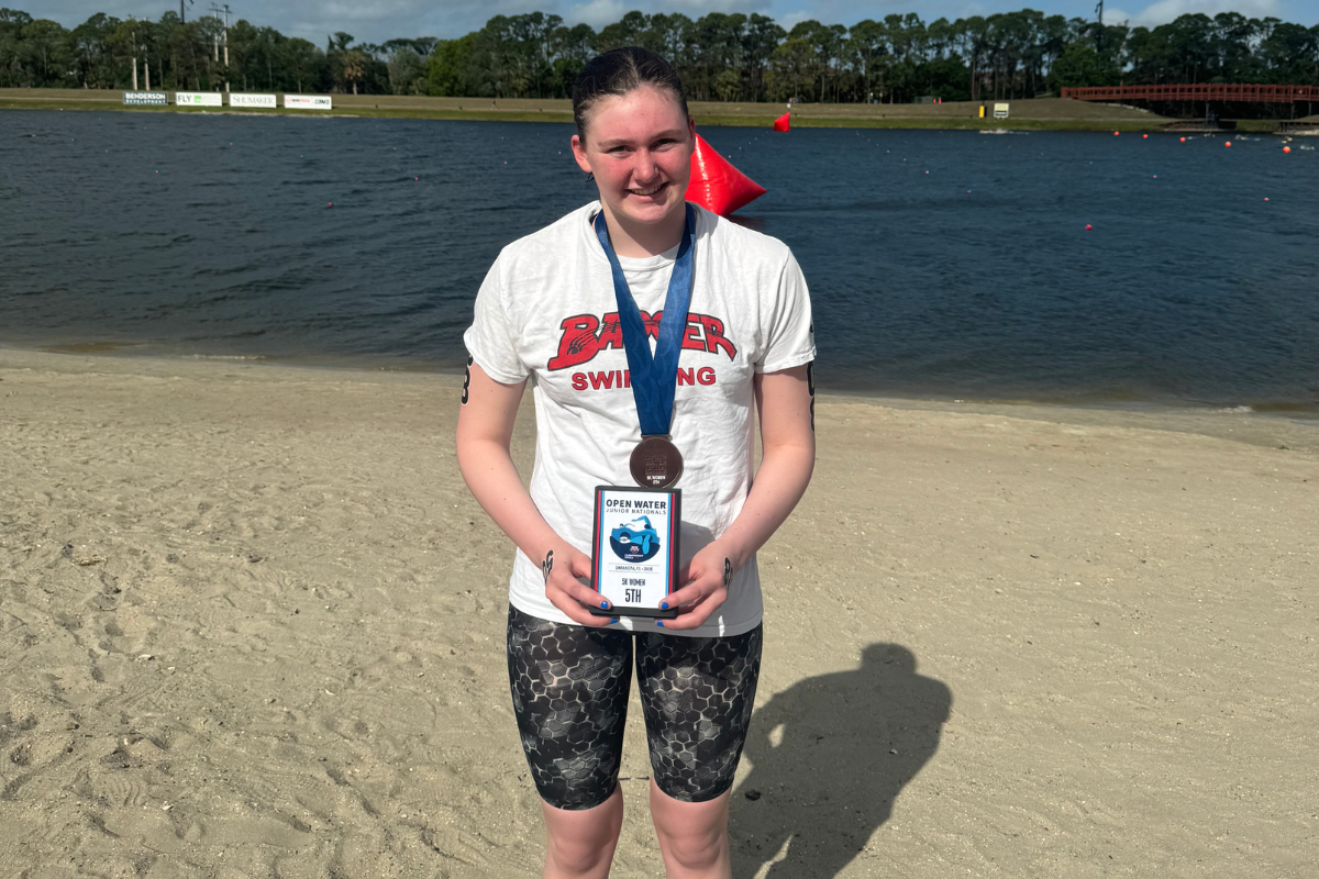 On the final day of Open Water Nationals Molly Cosgrove (Condors Swimming), Jackson Cooper (Badger Swim Club), Benjamin Robins (Badger Swim Club), and Oliver Shao (Badger Swim Club) are entered in the National 5K. Samantha Anderson (Long Island Aquatic Club), Sadie Davidoff, Alex Fox (Condors Swimming), Sasha Karafin (Long Island Aquatic Club), Allegra Speight-Ray (Asphalt Green Unified Aquatics), James Darcy (Long Island Aquatic Club) are entered in the Junior National 7.5K.