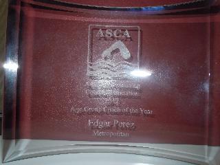 Earlier this year, Coach Edgar Perez was named the Metropolitan Swimming Age Group Coach of the year. On Friday September 7th, Coach Edgar received his honor at the American Swim Coaches World Convention in Las Vegas Nevada.