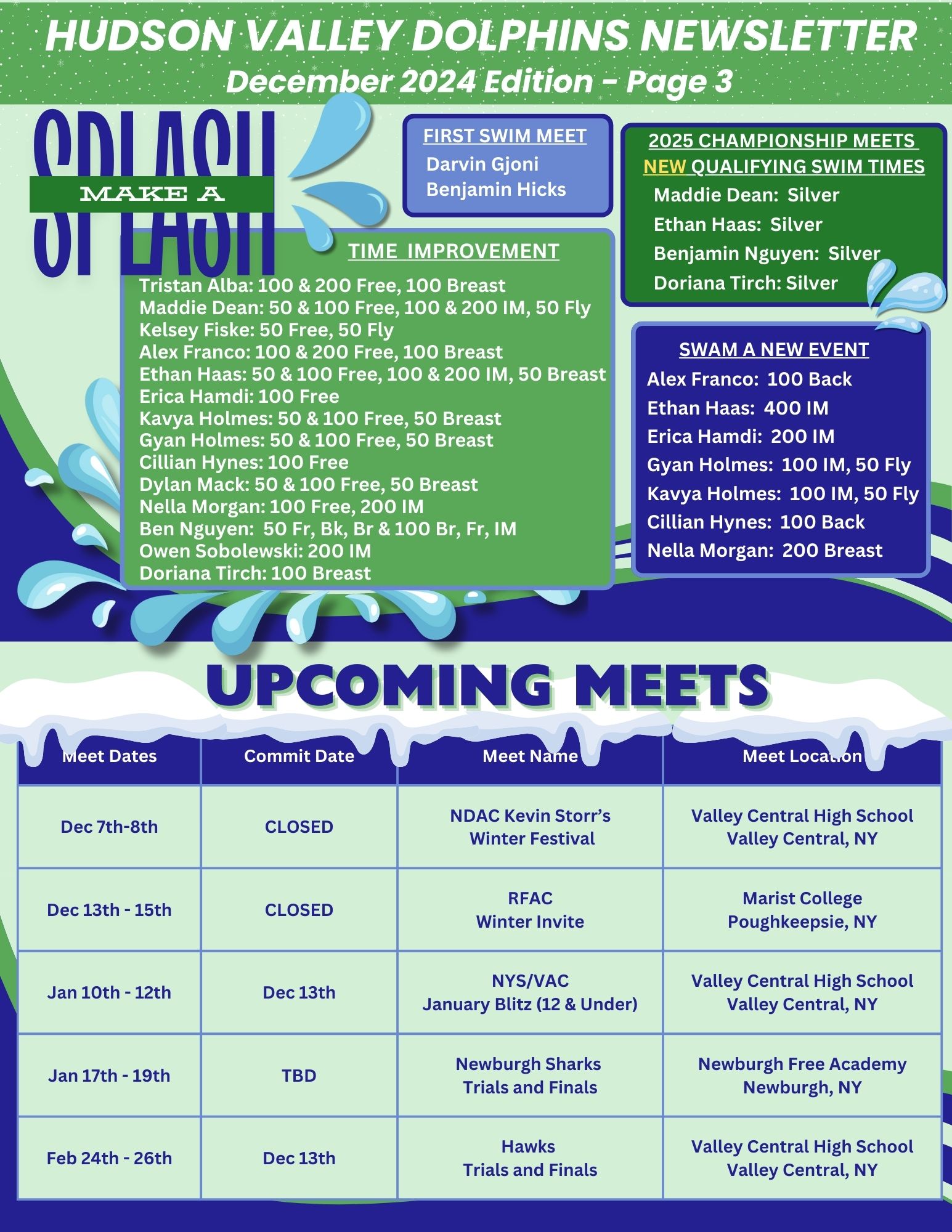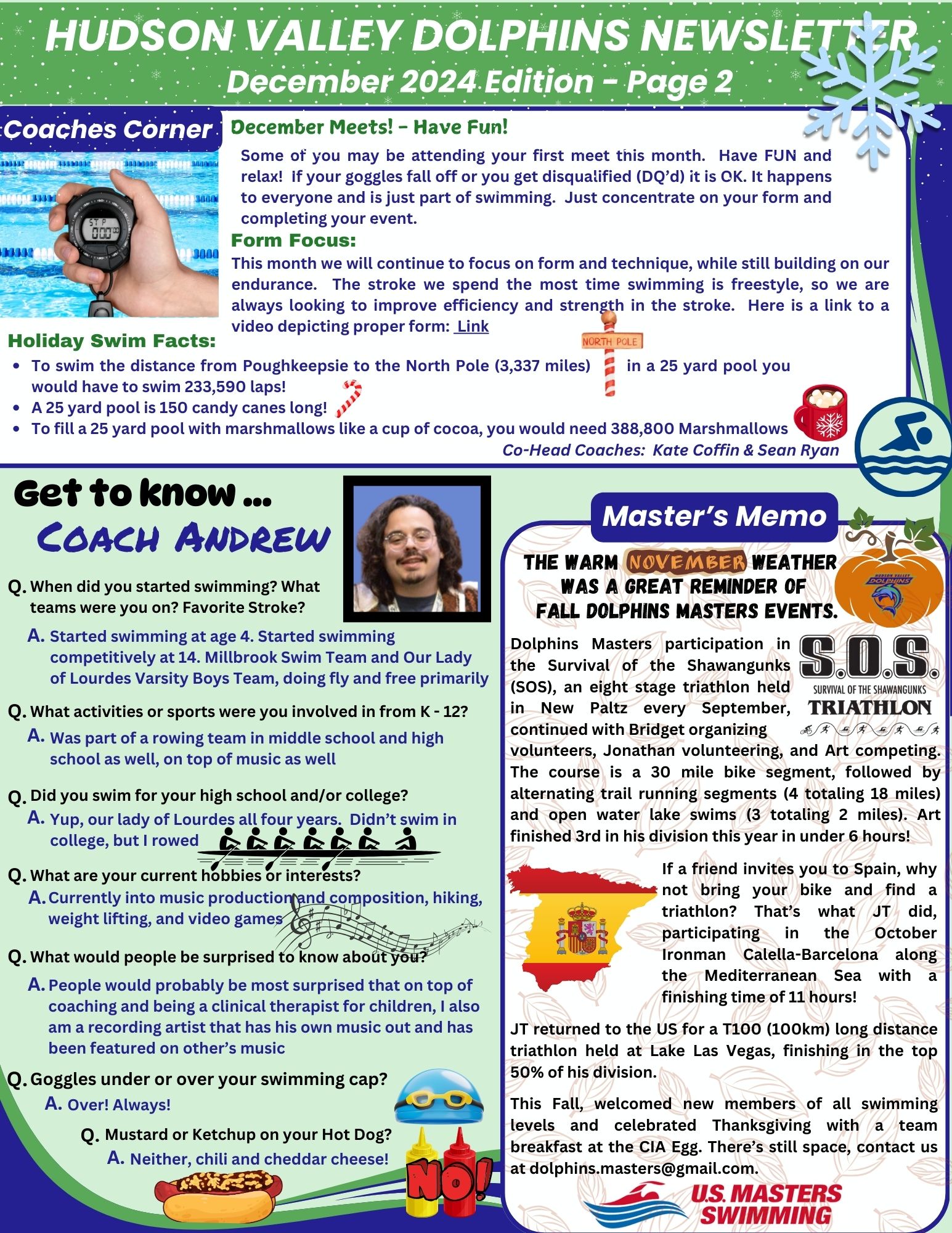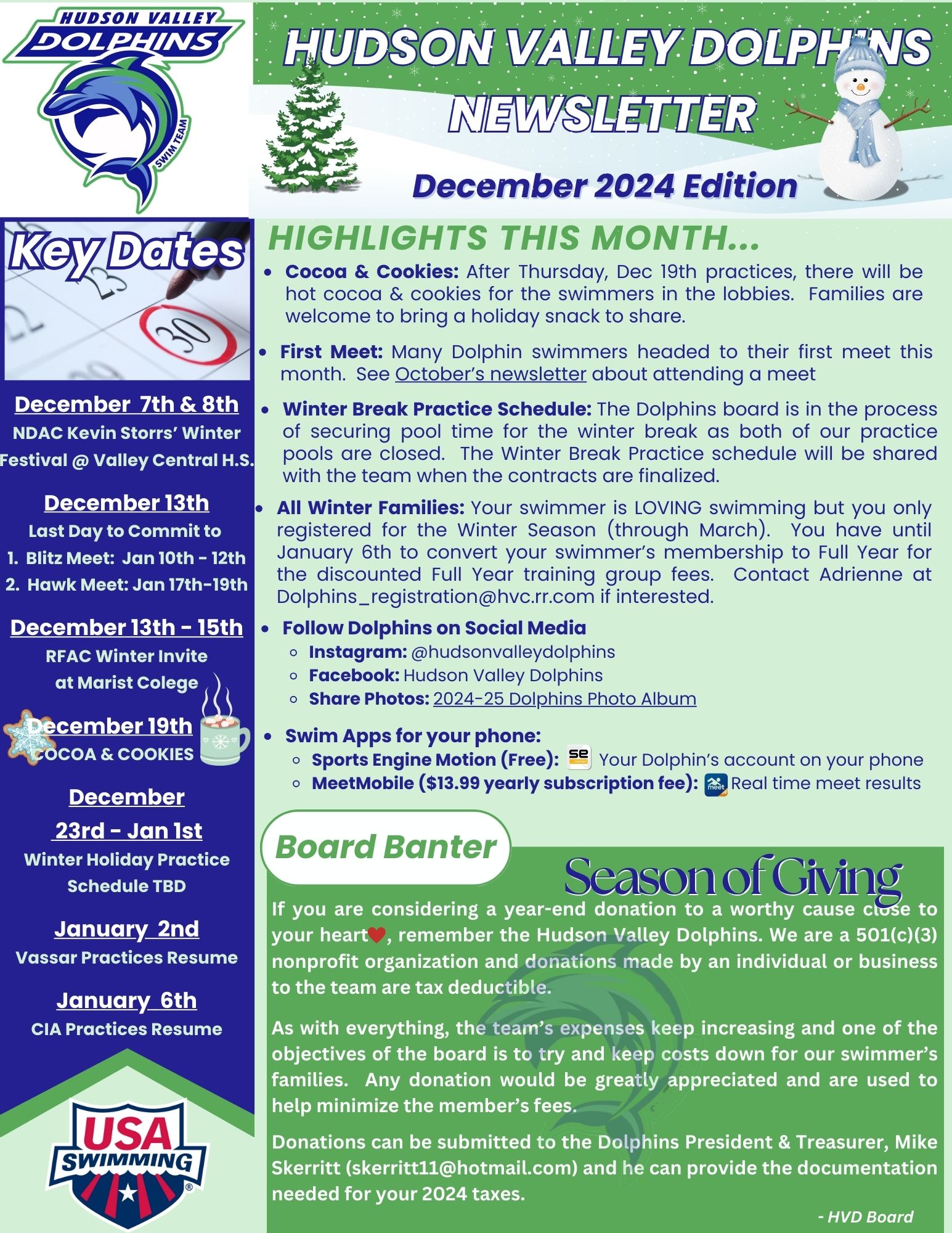 Here is the December Newsletter. In the Newsletter below, the links are not active. To access the December newsletter with active links go to the Dolphins website or you can also access it here "December Newsletter"