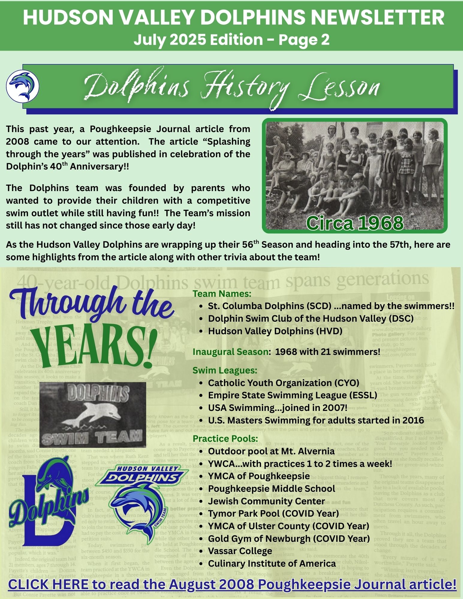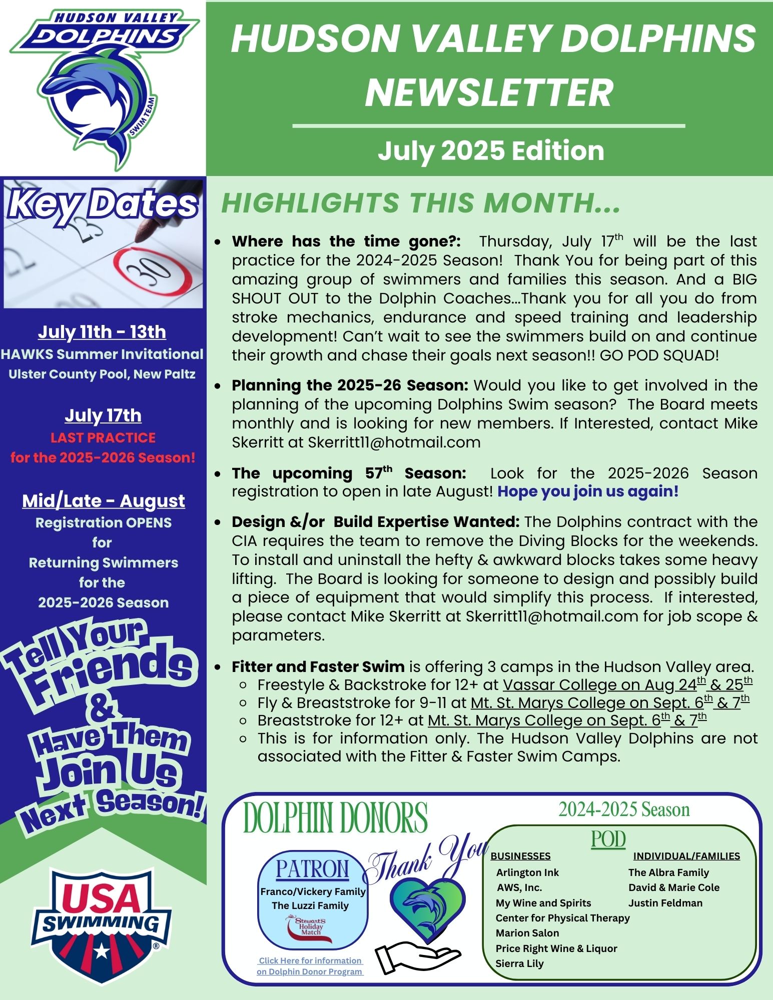 In the Newsletter below, the links are not active. To access the June newsletter with active links go to the Dolphins website or you can also access it here "July Newsletter."