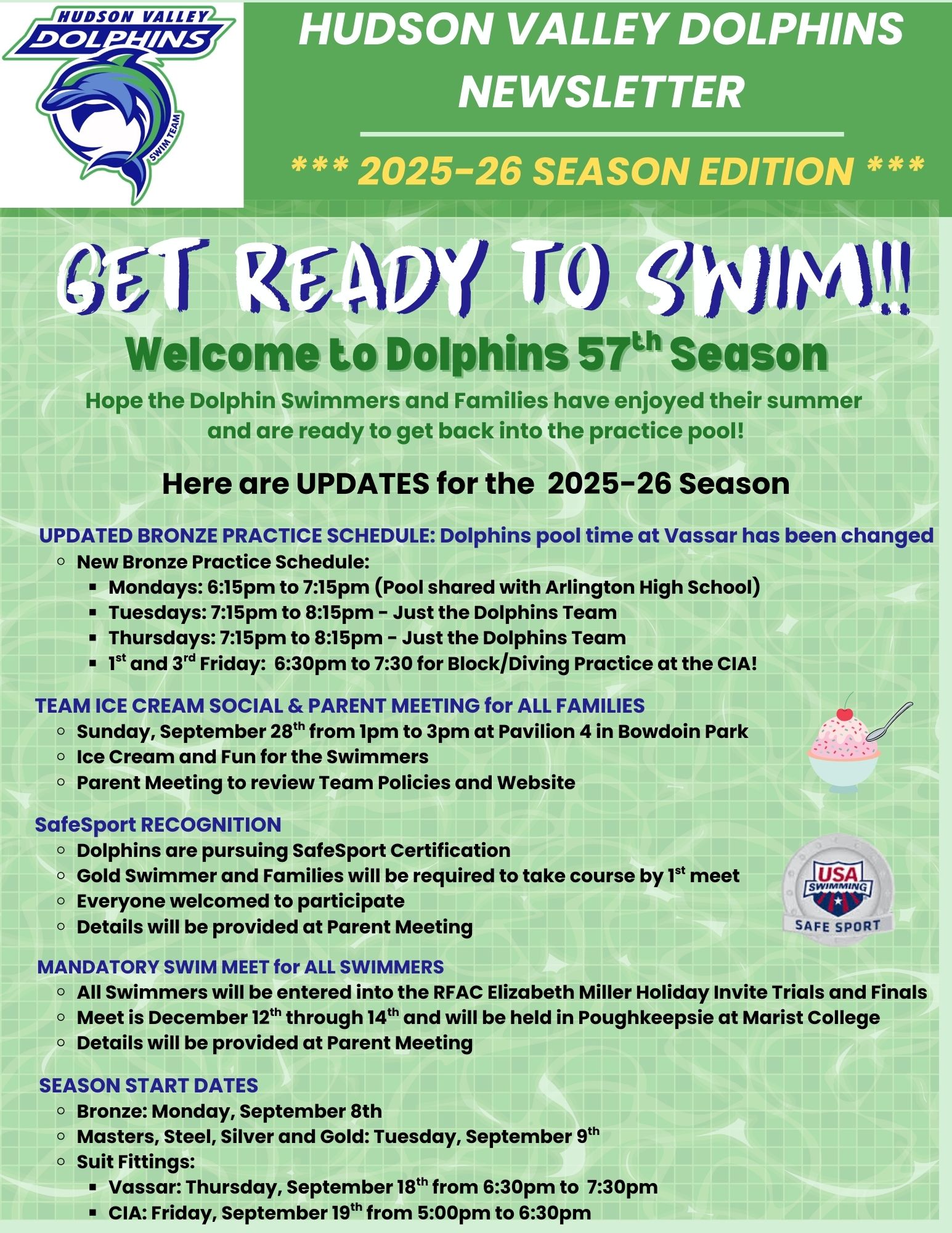 Here is the Special Edition of the Dolphins Newsletter with information about the upcoming season...the Dolphin's 57th Season!!