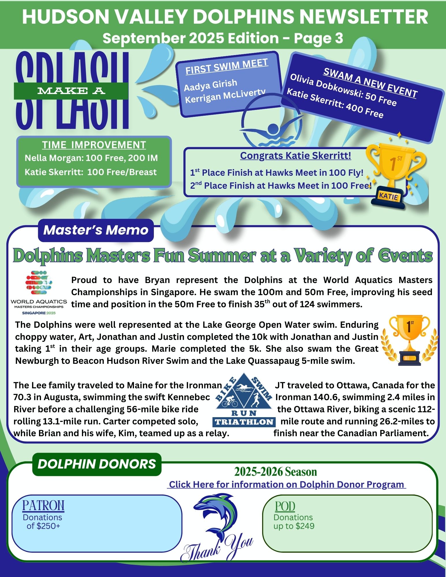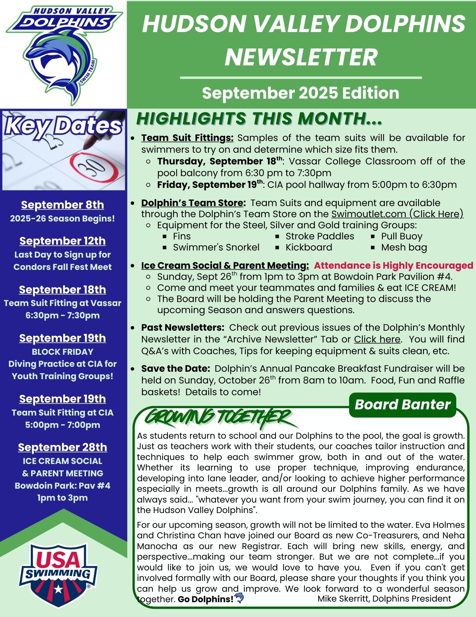 The Newsletter in this email (below) does not have active links. To access the September newsletter with active links go to the Dolphins website or you can also access it here "September Newsletter"