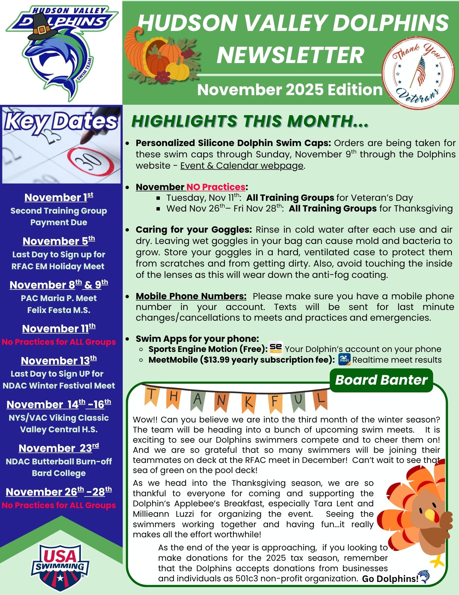 The Newsletter in this email (below) does not have active links. To access the November newsletter with active links go to the Dolphins website or you can also access it here "November Newsletter"
