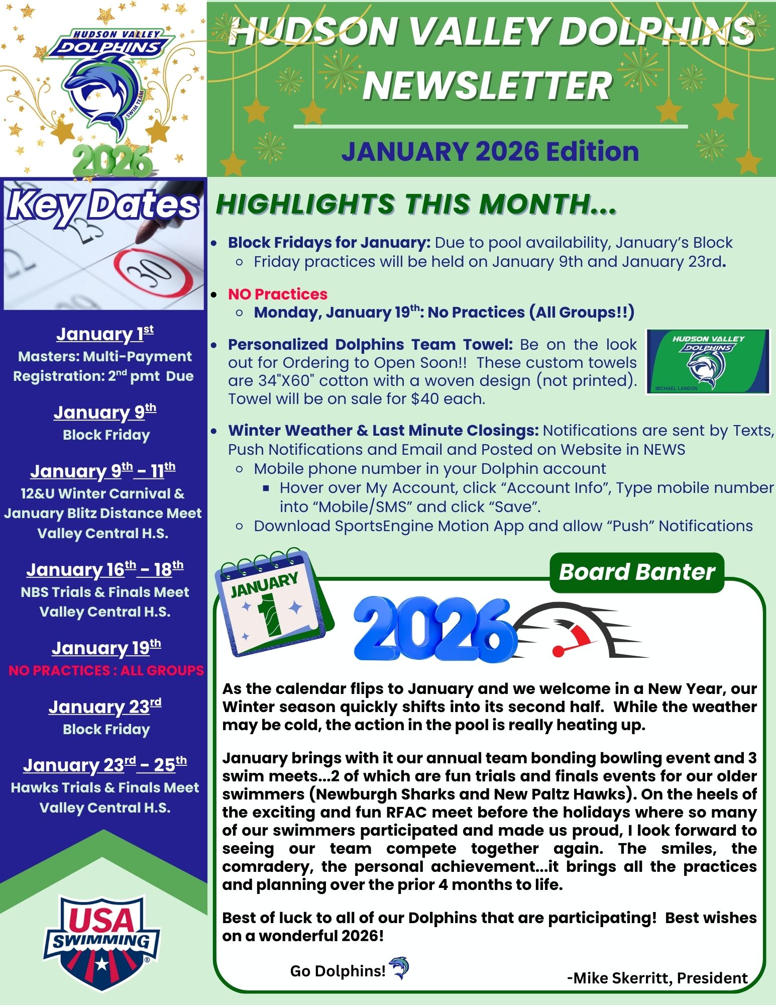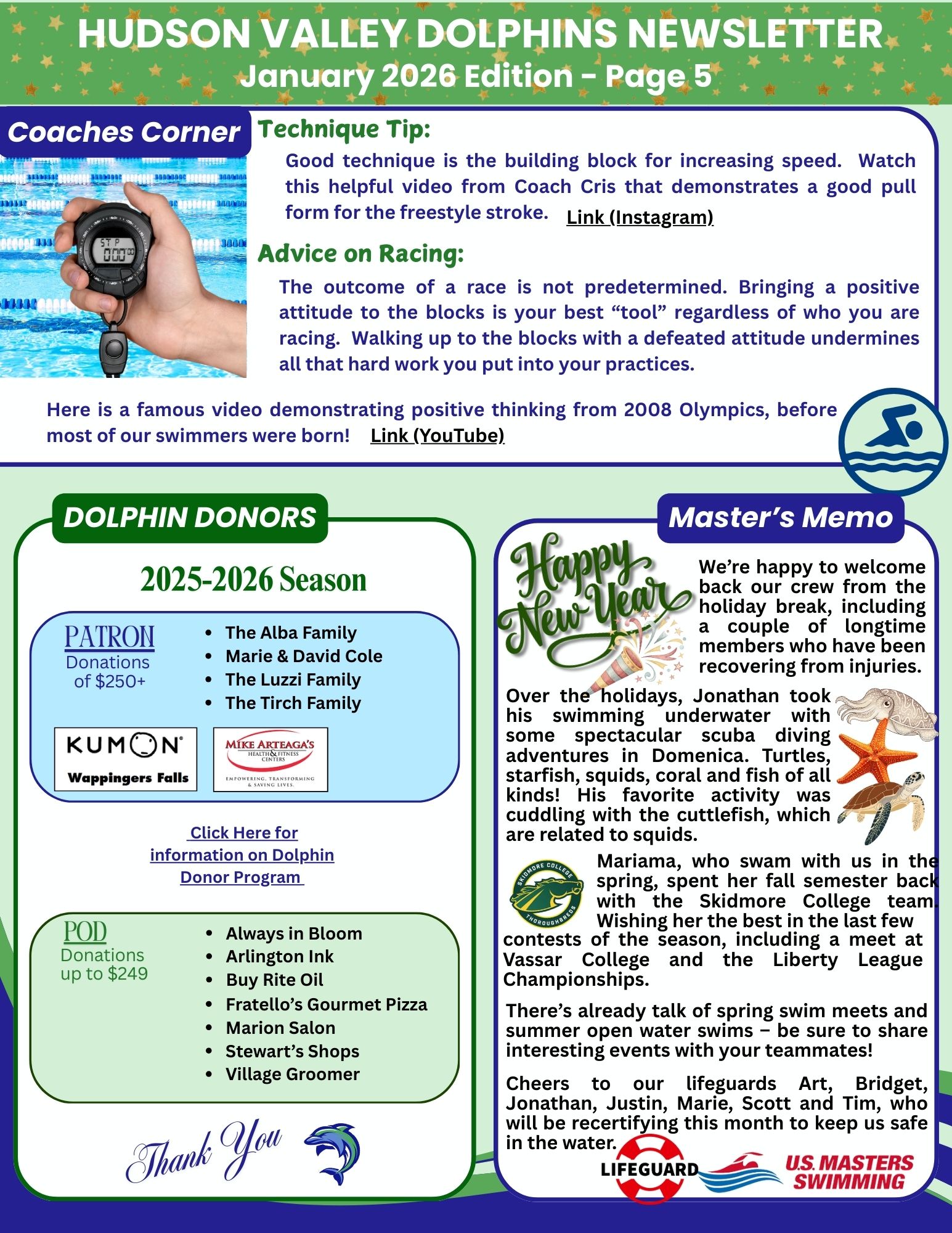 The Newsletter in this email (below) does not have active links. To access the January newsletter with active links go to the Dolphins website or you can also access it here "January Newsletter"