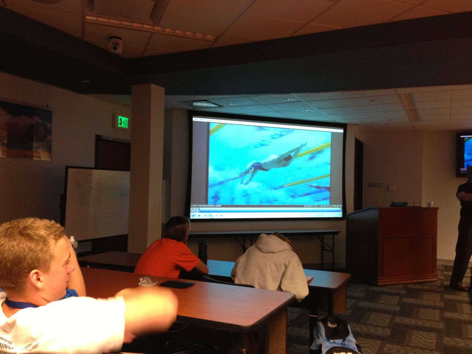 Between practices, I went over their stroke videos on the large screen at USA Swimming. We reviewed the footage and each swimmer received a DVD copy for them to take home. It was great to be able to break down their strokes on such a big screen.