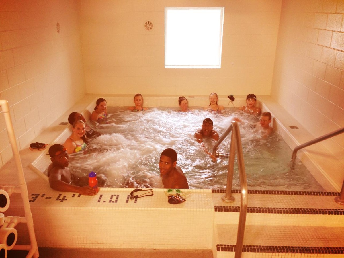 Our first practice went well, I was happy to learn we were sharing the pool with Crimson Tide Aquatics out of Tuscaloosa, both of us had 5 lanes swimming long course. CTA Coach John Boxmeyer traveled with 12 swimmers to OTC and they were our pool/dorm mates for most of our time there. A few weeks earlier we competed in one of their early season meets, it was really nice to know another team at OTC and also made for great coach sharing throughout the trip. Our first practice was moderate work to get accustomed to the altitude, most could tell the air was thinner, but it didn’t seem to set anyone back. We kept hydrated and they were happy to learn after practice they could get in the hot bud and try the ice baths if they wanted. The ice baths were new to our swimmers, we shared more than a few laughs experiencing them for the first time.