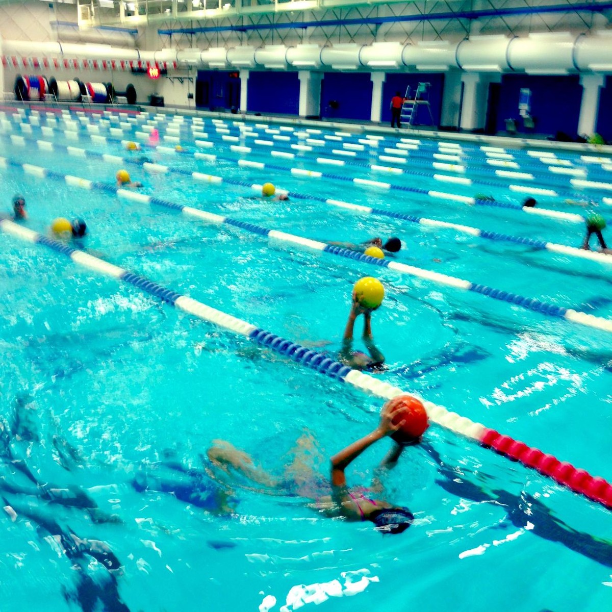 That afternoon Coach Kate led dryland circuits using the pool’s small exercise room and equipment. For practice, we kept it up with a med ball set in the water that involved difficult kicks, drills and lifts. It was challenging and something new, and pretty funny to watch. Our workload was starting to increase and they were starting to really enjoy the ice baths.