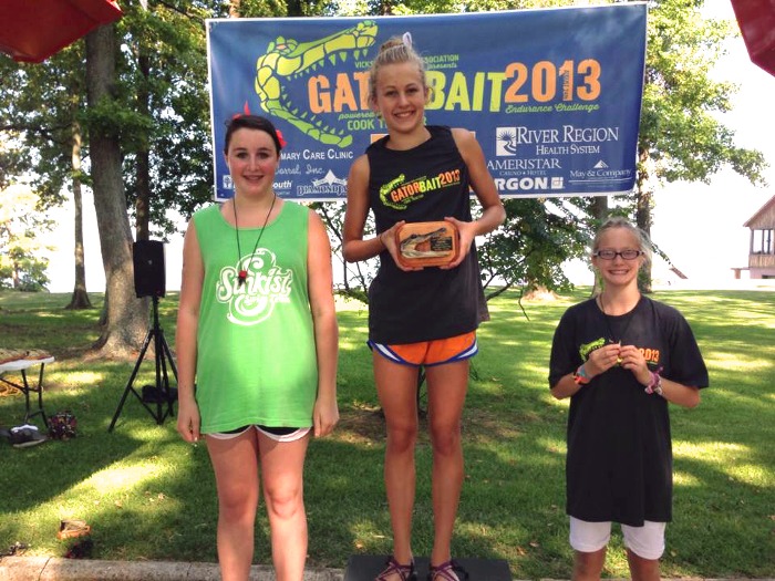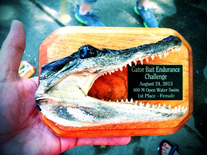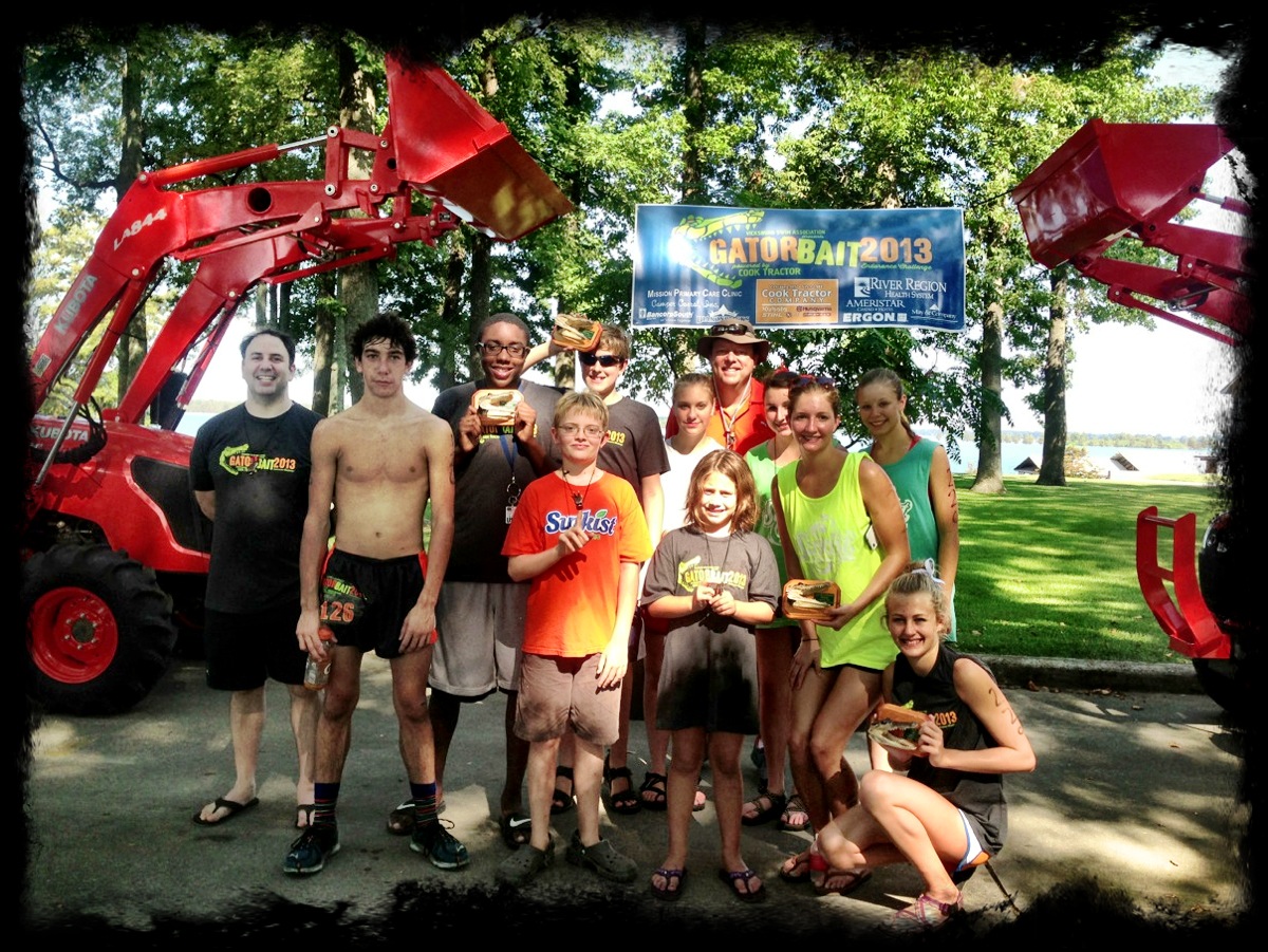Sunkist had a great showing at 2013 Gator Bait Endurance Challenge. Sunkist swimmers and coaches competed in open water swims and triathlon races at Eagle Lake in Vicksburg, winning lots of Gator trophies made of mummified heads and claws!