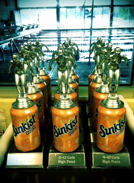 Sunkist opens short course season with dominate win at fun home meet. Sunkist topped 100 swimmers competing in a meet for first time, hosting a total of 220 swimmers from Louisiana and Mississippi. Pelican Athletic Club took second place with impressive swims, racing for Coach Vic's sock monkey prizes. Meet heat winners won tasty waffle fries from sponsor Chick-fil-A of Dogwood. High point trophies for this year's classic were peachy keen.