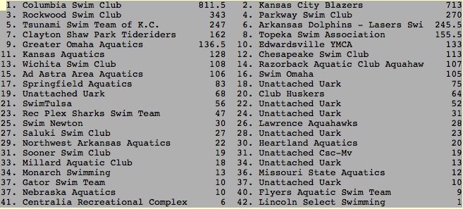 Here is a quick update on Sectionals.... We are rocking here!!! I will try and get a complete update when the meet is over. Here are the team scores, a few pictures and a link to the results so far. Go AAAA!