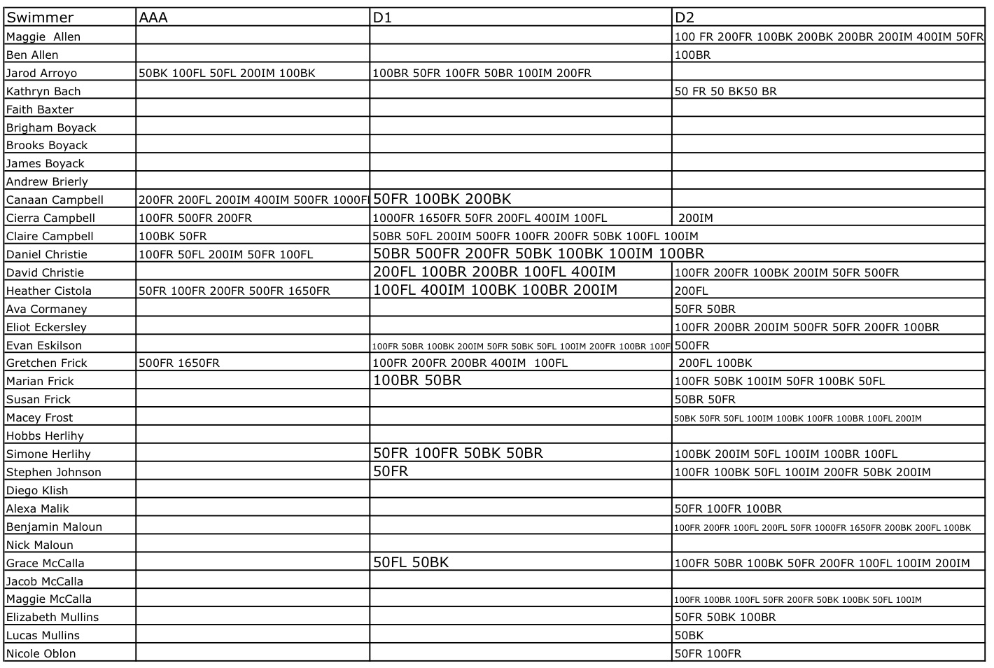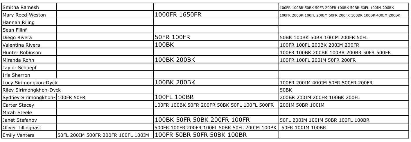 We also want to be aware of the fact that we are close to the end of the season -- our opportunities are limited so let's get to swim meets.  We want to make sure we have relays for Division 1s too.