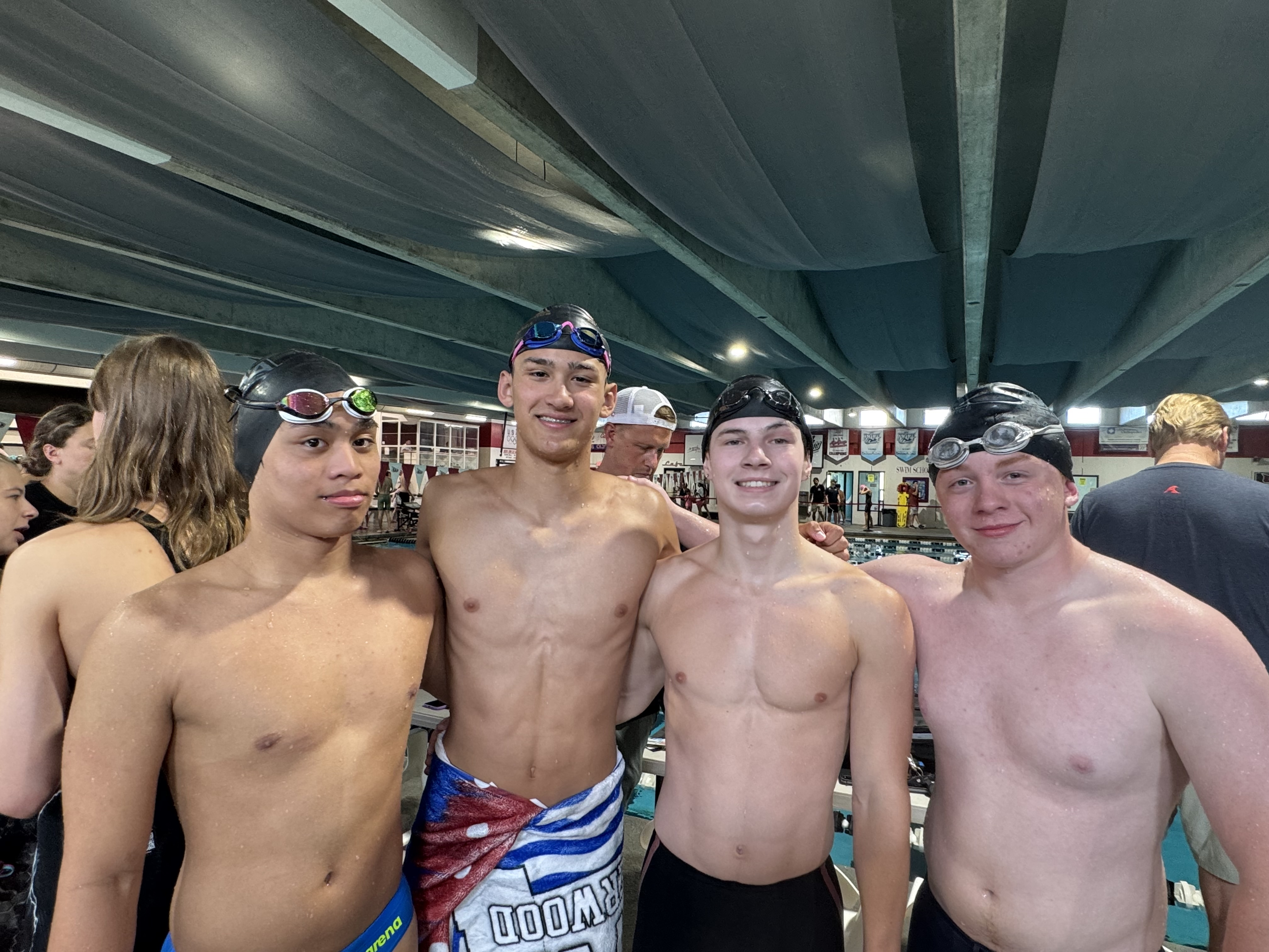 Congrats to Lucas Sherwood, Sebastian Iversen, Paul Morris, Josh Victoriano and Helena Mattes on their Champs Meet this past weekend in Wichita! Each swimmer had at least one best time and our boys medley relay took 11th place overall.