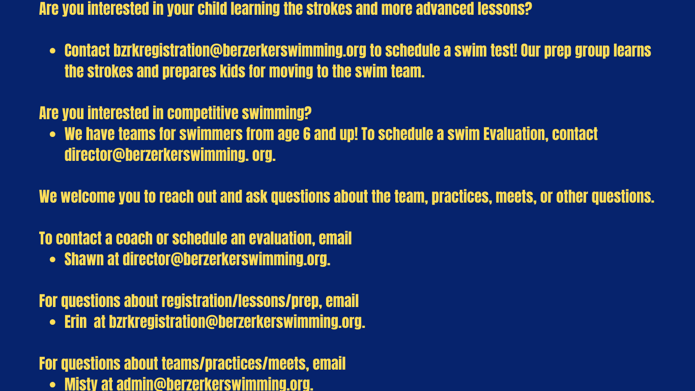 Berzerker Swim Team Registration