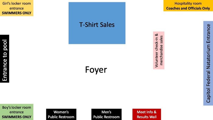 1. No spectators will be allowed in the main pool area until 45 minutes prior to each session. The lobby will be open.