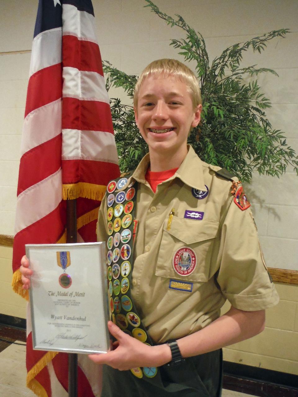 Recently, Eagle Scout and GNST swimmer, Wyatt Vandenhul, received with a Medal of Merit Award from the National Court of Honor, Boy Scouts of America. These medals are presented to scouts who've performed an act of service of rare or exceptional character that reflects an uncommon degree of concern for the well-being of others. Last summer, Wyatt was attending a large group gathering for a swim party. He was in the swimming pool with about 6-10 other children ranging in age from 10-16. A new family showed up at the...