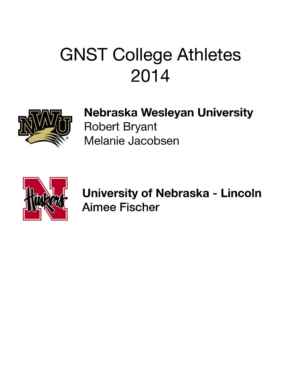 Two more GNST swimmers commit to swim in college. Robert Bryant and Melanie Jacobsen, 2014 graduates of Pius X High School, will swim for Nebraska Wesleyan University next year. Congratulations and good luck!