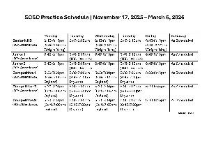 Practice schedule for November 17, 2025 - March 6, 2026.