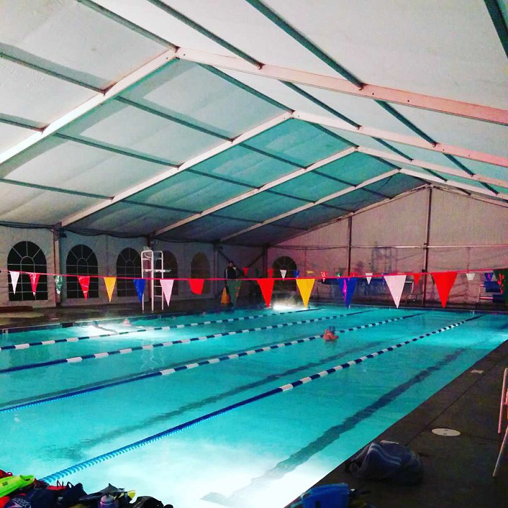 Fairmeadows is a 5 lane, 25 yard pool. ATOM swims at Fairmeadows from September-April. During these months, the pool is covered by a semi permanent structure (a "tent") and the water and air are heated.