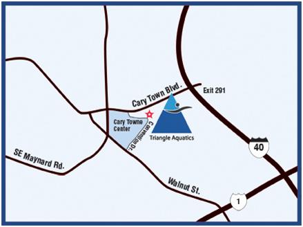 1/2 mile on the left is 275 Convention Drive ; Triangle Aquatic Center |