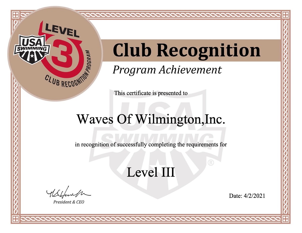 We are very pleased to announce that WOW has earned Level 3 status through USA Swimming's Club Recognition Program!