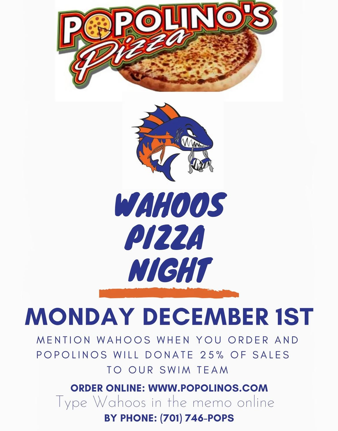 Just a reminder that tonight is our Popolino's Pizza night!! Popolino's will donate 25% of all sales to the team. Order some pizza and help support the team!