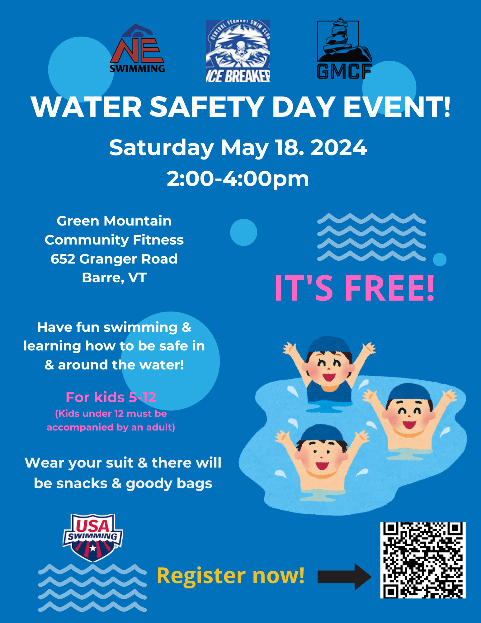 Our team is hosting a Water Safety Day at Green Mountain Community Fitness in Berlin on Saturday, May 18, 2024 from 2:00-4:00pm!