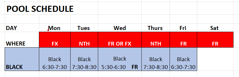To move from Blacks you MUST attend all mandatory meets, attend some optional meets, attend the majority of practices, and have the ability to apply corrections quickly;