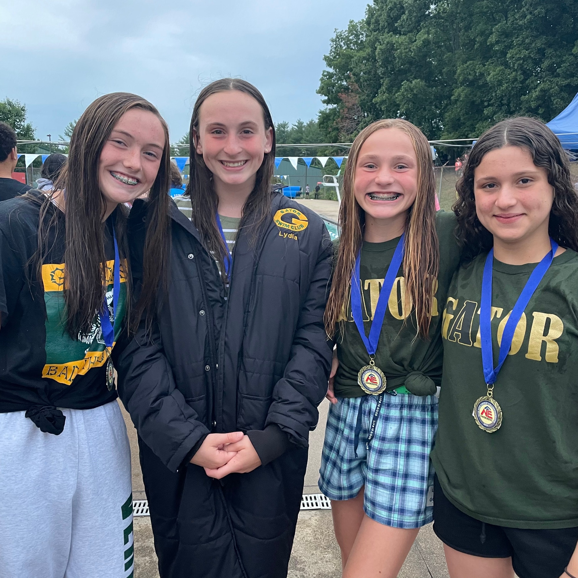 Gators continued to shine on the last day of the 11-12 Age Group Championship. Lydia won her second championship of the meet by finishing first in the 100 meter free with a winning time of 1:02.89. Our girls then capped off the meet by winning the 400 free relay with the team of Elizabeth, Reese, Sadie and Lydia in a time of 4:23.99.