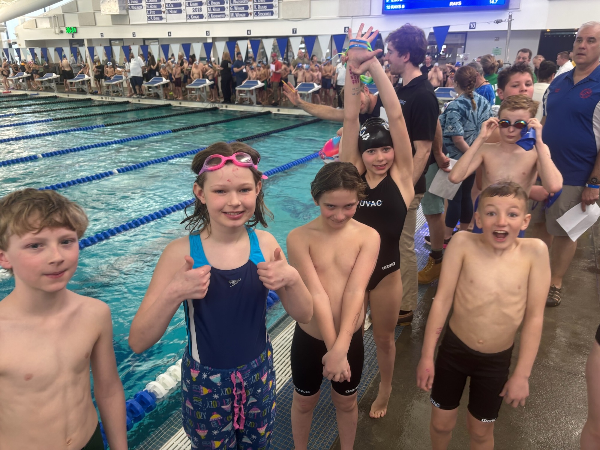 Our 5 swimmers from UVAC were: Hailey, Elina, Kenize, Isak, and Sofia. They were joined by 4 swimmers from Dartmouth, representing UVAC (it's an...