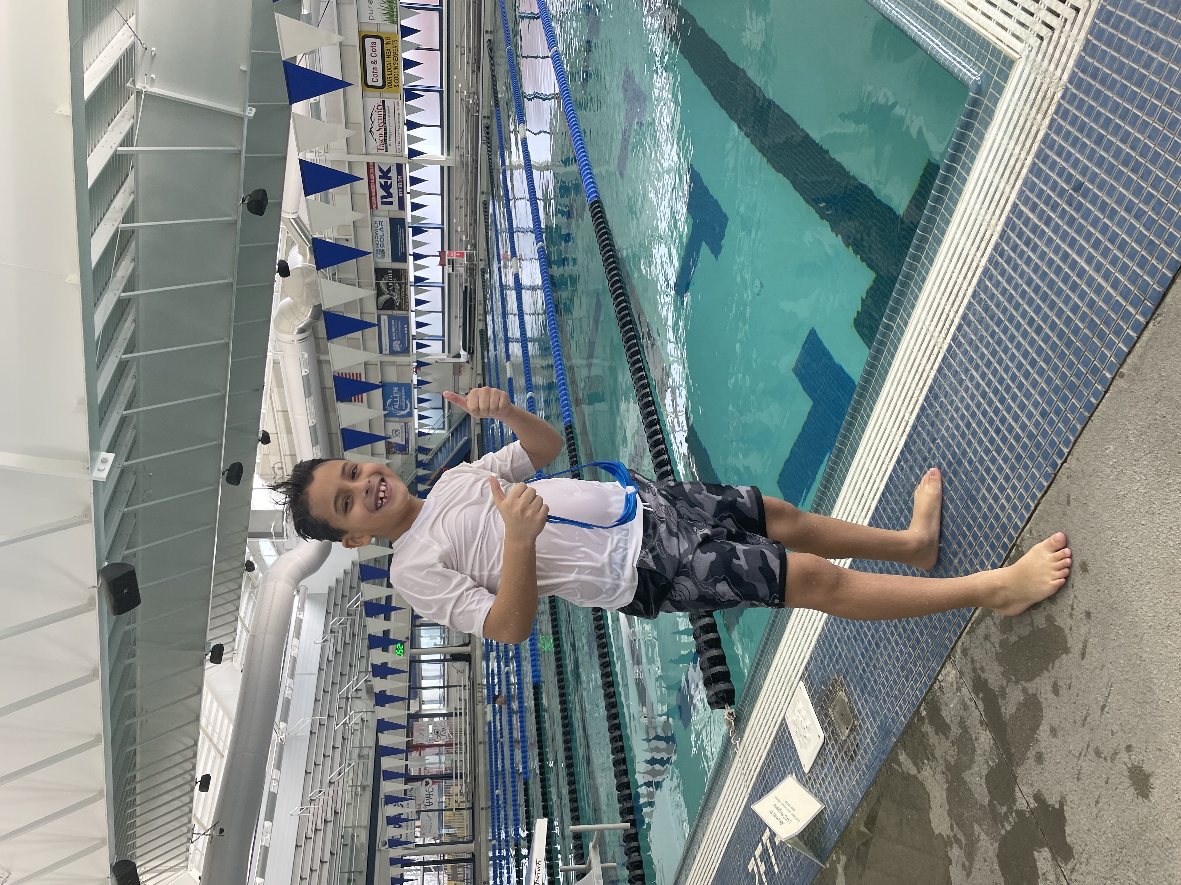 -"Nicholas transitioned from the warm pool to the competition pool under the instruction of Tomas Langland. We are so proud of him and this milestone! He is currently doing 100 yards!"