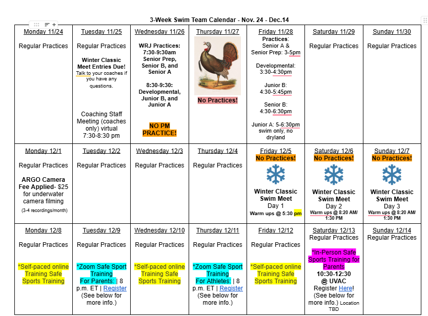Below is our WRJ team practice schedule for 11/26-11/29:
