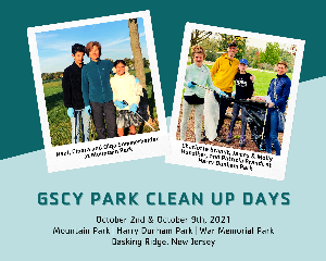 As part of its commitment to the community, GSCY swimmers and families recently participated in GSCY Park Clean Up Days. On October 2nd and October 9th, volunteers went to Mountain Park, Harry Dunham Park, and War Memorial Park in Basking Ridge - ready to do their part in keeping our parks clean and beautiful! Swimmers and families covered a lot of ground, picking up bottle caps, plastic bottles, used masks, snack bags and other trash. “I want to thank all of our volunteers and organizers for working hard for our...