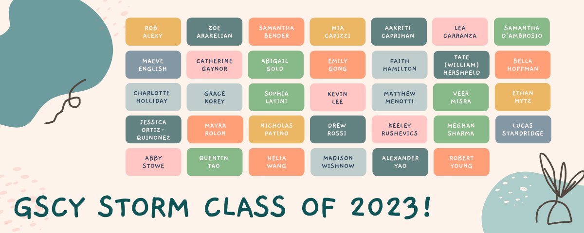 Congratulations Class of 2023! We are in awe of our GSCY Storm Seniors, who consistently demonstrate hard work, commitment, passion and caring in and out of the pool. As you embark on your new journeys after high school, may you achieve continued success and keep the lasting memories and friendships you have built at GSCY. Continue to show the world what GSCY Storm is made of!