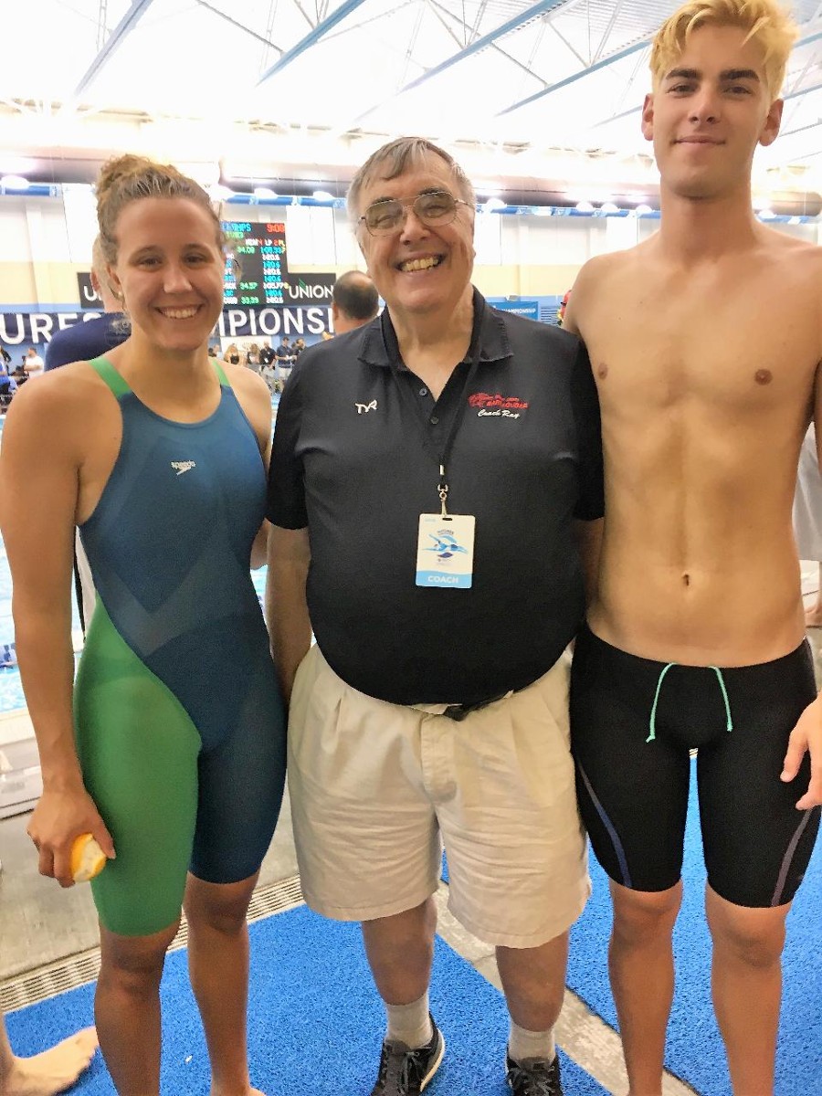 We are so very proud to have two of our swimmers advancing on the national stage and competing in this prestigious meet. Jake Riva (16) swam the 100 Fly, 100 Back, 50 Free (Time Trials), and 200 Back. Sam Russell (17) swam the 100 Breast, 200 Breast, and 200 IM. Both swam great, representing themselves, our team, and our area very well. The weekend was filled with intense competition, best times, and fun. Congratulations to Sam and Jake on their accomplishments!