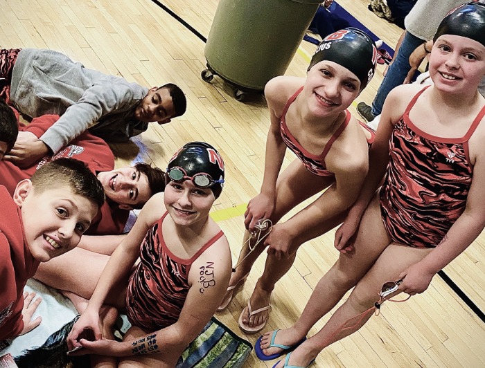 Top places weren’t the whole story; our swimmers swam WELL. Of the 274 NJB splashes, 97 of them were Personal Best Times- about 35% of our swims. Some of these were significant drops exceeding 10 seconds of improvement like Andrew Carlson’s 500 Free (-56.56); Sadie Cornelius’ 500 Free (-21.93); Brodie Fritsch’s 200 IM (-12.68); Marcus Innamorato’s 200 IM (-27.37); Nathaniel Kern’s 500 Free (-10.97), 100 Breast (-14.13); Jesse Kiederling’s 100 Fly (-18.81); Josh Langley’s 100 Fly (-18.19); Billy Ruddy’s 50 Back (-11.91); Will Tagliareni’s 500 Free (-19.02); and Kathryn Zaremba’s 200 Free (-36.49); and a ton of other exciting swims including many first-time swims.