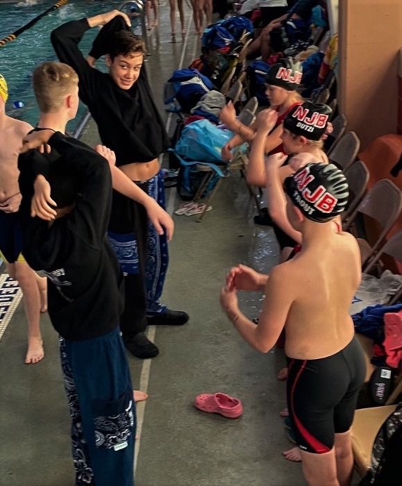Of our 62 splashes, about 80% were either first-ever swims (16) or Personal Best Times (33)! Of those Personal Bests, some were quite notable like Julia Dutzi’s 50 Fly (-21.60); Ty Hollar’s 200 Back (-22.82) and 200 Breast (-15.48); Alex Johnson’s 100 Breast (-10.13); Connor Kovach’s 100 Back (-10.24) and 100 Breast (-10.80); Leah Lozada’s 100 Free (-9.86) and 200 Breast (-18.91); and Jamason Trout’s 100 Free (-14.88); just to name a few!
